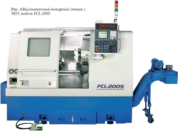 Тайванская компания FORCE ONE специализируется исключительно на производстве токарных станков. В ее номенклатуре есть модели, оснащенные револьверными головками с фрезерной функцией, контршпинделями, а также высокоточные токарные станки с ЧПУ, оснащенные осью Y. На данный момент на складе ООО «Империя Металлов» находится высокоточный токарный станок с ЧПУ модели FCL-200S (рис. 4). Его технические данные представлены в табл. 4. Основные части станка, такие как станина, суппорт, передняя шпиндельная бабка, направляющие и корпус задней бабки — изготовлены из высокопрочного чугуна Meehanite и закалены для обеспечения длительной работы, связанной с большими нагрузками и высокой точностью изготовления деталей.