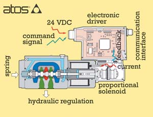 Последние разработки компании Atos в области электроники для гидравлических устройств сфокусированы на интеграции стандартных функций контроллеров в привод с шинным интерфейсом, контролируемых центральным устройством управления оборудования. Новые интеллектуальные цифровые контроллеры обеспечивают возможность самостоятельного функционирования автономных узлов и упрощают архитектуру полной автоматизации машины.