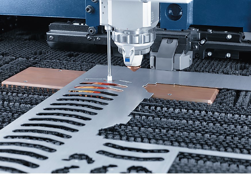 Вырубная голова традиционно для координатно-пробивного станка TRUMPF поддерживает вращение любого инструмента из магазина станка. Новая компоновка позволила сократить площадь, занимаемую станком. Но главное его преимущество состоит в том, что при необходимости станок может быть модернизирован: к вырубной голове может быть добавлена лазерная, а также механизмы, обеспечивающие автоматизацию процессов загрузки-выгрузки. Таким образом, даже небольшая компания, начавшая с малого производства, может постепенно модернизировать первоначально приобретенный станок до полноценного лазер-пресса и выйти на новый уровень производительности и технических возможностей, что будет существенно проще и дешевле, чем покупка отдельного комбинированного станка.