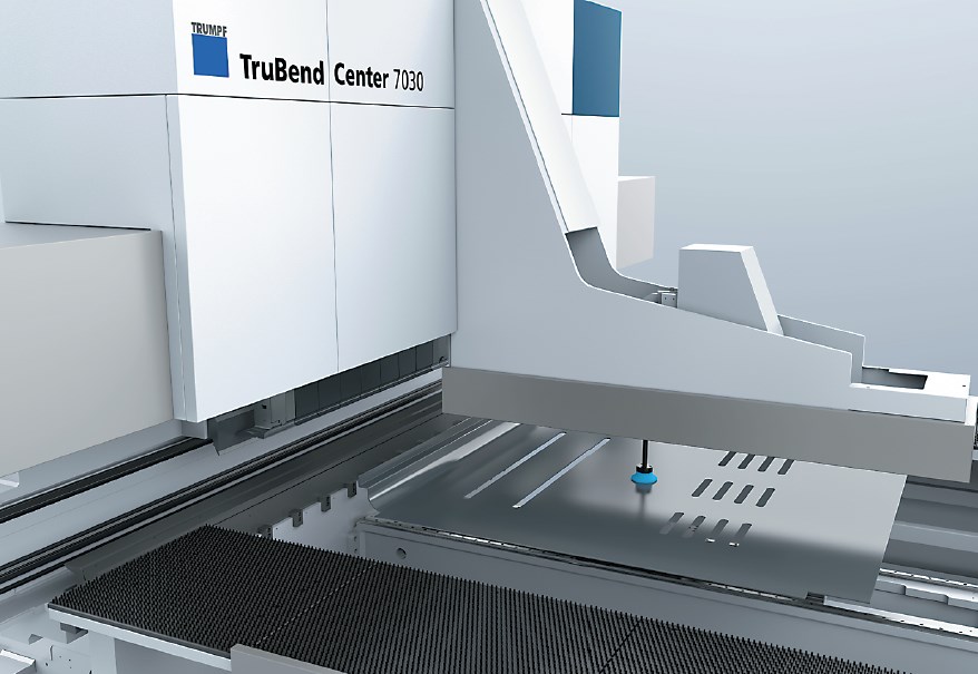 Подключив такой станок к складу, можно еще больше повысить его автономность. Еще два года назад TRUMPF презентовал свой панелегиб. Сегодня мы предлагаем новое поколение данного оборудования — TruBend Center 7030 — с возможностью поворота заготовки на плоскости стола и полной автоматизацией процесса. Это обеспечит длительную работу в автономном режиме при подключении станка к складу.