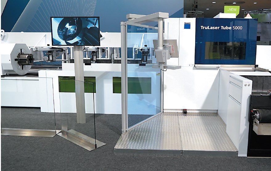 Компания TRUMPF давно известна как производитель надежных и технологичных труборезов. На Euroblech-2016 представлен станок TruLaser Tube 5000 fiber, оснащенный твердотельным лазерным источником, с новыми возможностями и функцией RapidCut. Это специальный режим, позволяющий задействовать дополнительную ось на режущей голове с целью повышения общей производительности системы, что особенно заметно на небольших деталях/перемещениях.