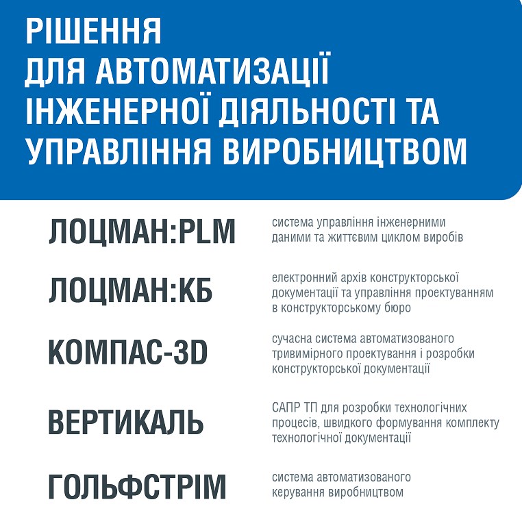 Важливо й те, що ЛОЦМАН:КБ розвивається переважно за вимогами замовників, тому в системі присутній той функціонал, який дійсно заст осовується. Ставши користувачем цієї PDM-системи, ви також можете брати участь у розвитку продукту, повідомляючи розробникам про завдання, вирішення яких ви хотіли б використовувати у своїй роботі.