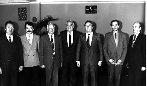 Б. Е. Лушпенко, зав. отделом зарубежных связей ИСМ, проф. М. Калайджич, действительный член СИРП, проф. Э. В. Рыжов, зав. отделом № 18 ИСМ, проф. В. Милачич, зав. кафедрой Белградского университета, действительный член СИРП, П. С. Кислий, чл.-корр. АН УРСР, зам. директора ИСМ, магистр Л. Танович, В. А. Рыбицкий, с. н. с. отдела № 18 ИСМ