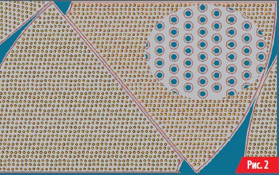 «Сито» — деталь с большим количеством внутренних отверстий — принадлежит к отдельному классу деталей, часто встречаемых на производстве. Построение карты размещения заготовок и пути движения инструмента требует больших вычислительных ресурсов. Современная версия оптимизирована для быстрой обработки «сит» с количеством отверстий до 500 и для обработки сверх больших«сит», содержащих до 10 000 отверстий, за допустимое время (рис. 2).