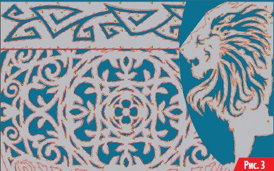 С помощью плазменной резки нередко изготавливаются детали художественного назначения: элементы решеток, скамеек, памятников, панно, логотипы и прочее. Они характеризуются экстремально сложным контуром, создаваемым дизайнером с помощью специального программного обеспечения. Соответственно, оно содержит описание в виде сплайновых кривых, которые с помощью программы Интех-Раскрой преобразуются в линии и дуги, обеспечивая высокую точность повторения контура и минимальное количество отдельных элементов (рис. 3).