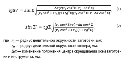 Расчетные зависимости для определения угла непараллельности осей, перекоса осей шевера и заготовки имеют вид: