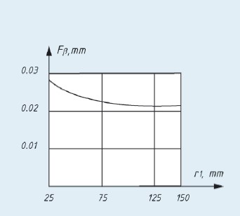 Рис. 2. Погрешность направления зуба в зависимости от радиуса делительной окружности заготовки