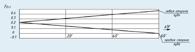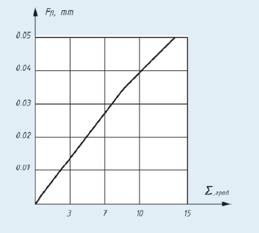 Рис. 3. Погрешность направления зуба в зависимости от изменения расчетного угла скрещивания осей