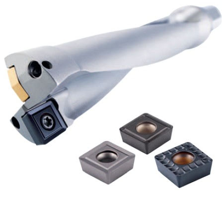 KENNAMETAL производит самую широкую гамму сверл и разнообразных решений для этого типа обработки. Например, сверла с механическим креплением пластин серии DFSP. Они прекрасно зарекомендовали себя при обработке самых различных материалов. На этом сверле установлены пластины разной формы: центральная — ломаный треугольник, периферийная — квадрат. Благодаря этому сверло хорошо центрируется. Периферийная пластина в виде квадрата — наиболее экономически выгодна за счет четырех режущих кромок. Жесткость корпуса сверла DFSP позволяет производить расточку после сверления, используя сверло как расточной резец на токарном станке.