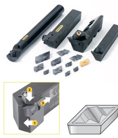 Также разработана система TopNotch Profiling для профильного точения. Она обеспечивает закрепление резца в державке без проворотов и смещений. Поэтому используемые в ней пластины VBMR имеют бóльшую стойкость, чем классические пластины для профильной обработки DCMT… и VBMT…/VCMT… Данное решение позволяет получать более высокое качество поверхности, а также лучше измельчать стружку при обработке пластичных материалов.