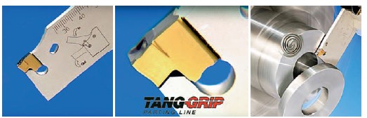 Пластины TANG-GRIP, в зависимости от задачи и условий обработки, выпускаются со стружколомами различных типов, при этом режущая кромка может быть расположена перпендикулярно либо под углом к оси вращения детали. Для повышения жесткости пластины фиксируются удобным зажимным устройством в одном из пазов адаптера квадратной формы. Ширина пластины может быть от 1.4 до 12.7 мм. Пластины изготавливаются из твердого сплава IC830 либо IC808, а затем для повышения их режущих свойств и стойкости на них наносится PVD-покрытие по упрочняющей технологии SUMO TEC. Адаптеры представлены в типовых размерах, соответствующих стандартным блокам ISCAR.