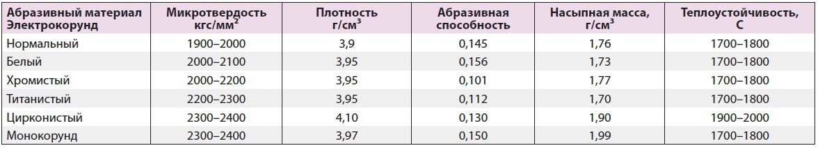 Таблица 2. Основные физико-механические свойства абразивных материалов