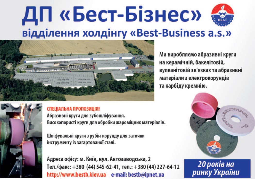 Для разработки новых абразивных инструментов для шлифования деталей машин очень важно сделать грамотный выбор соответствующих материалов и связки, а также получить требуемую структуру круга. Опыт применения абразивного инструмента холдинга «BEST-BUSINES, a. s.» на машиностроительных предприятиях Украины доказал его высокую эффективность. Не упустите возможность им воспользоваться!