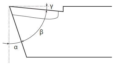 Угол заострения β — угол между передней и задней поверхностями резца. Его увеличение повышает прочность инструмента.