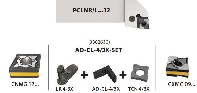 Для снятия припуска до 3 мм можно использовать как стандартную двухкромочную пластину CNMG 1204… с соответствующей державкой, так и четырехкромочную CXMG 09… меньшего размера, используя специальный адаптер (рис. 3).