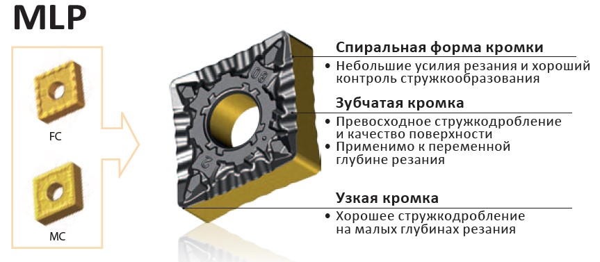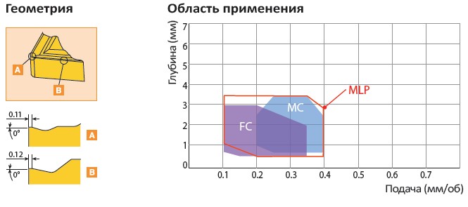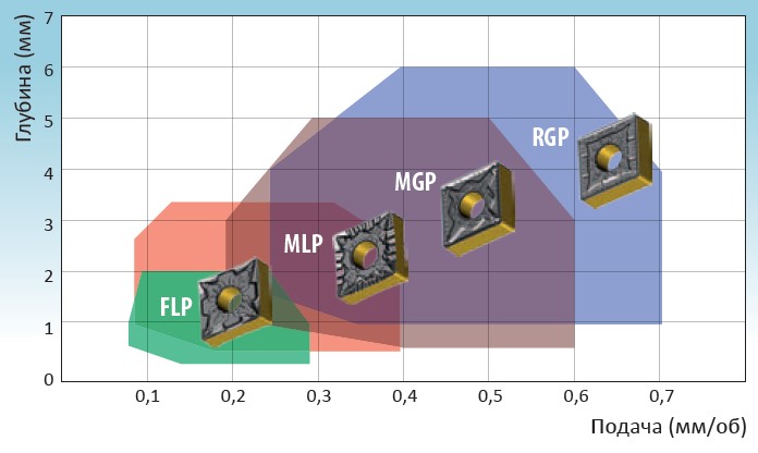 Рис. 6. Характеристики и область применения пластин со стружколомом MLP