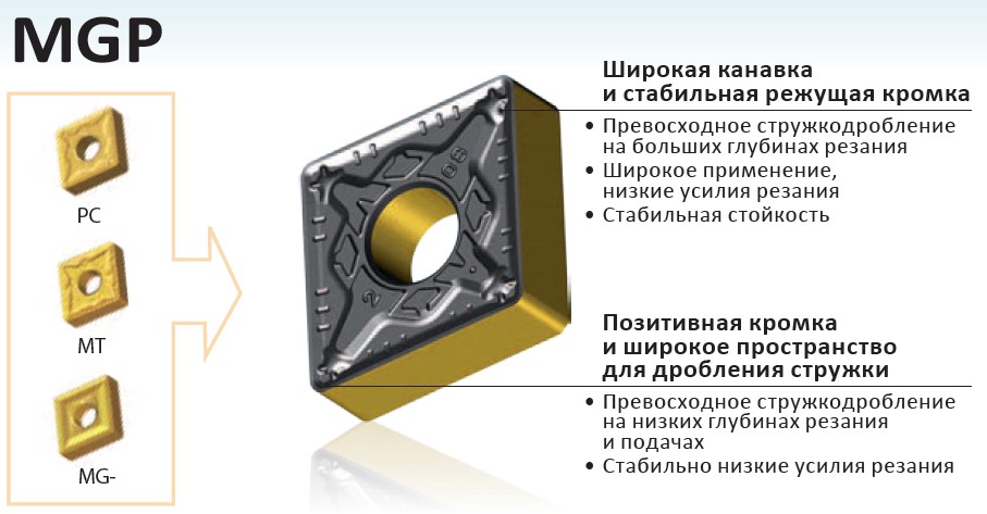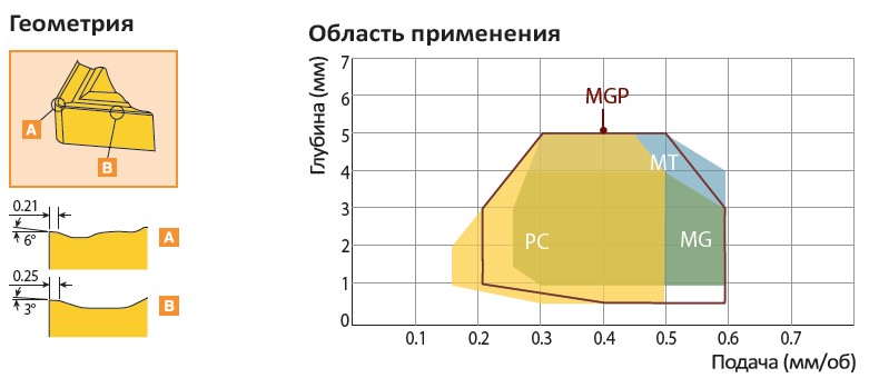 Рис. 7. Характеристики и область применения пластин со стружколомом MGP