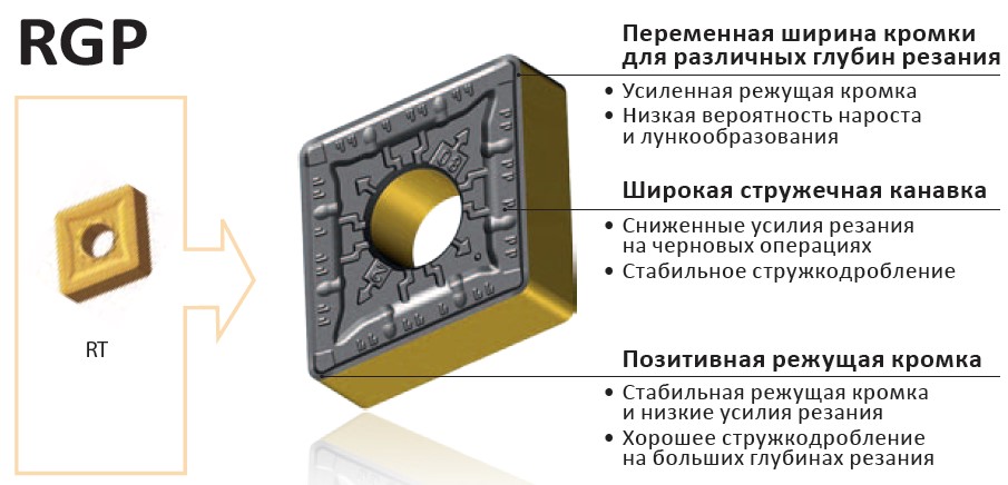 стружколом RGP предназначен для черновой обработки, усиленная кромка и широкая стружечная канавка надежны даже при прерывистом резании (рис. 8).