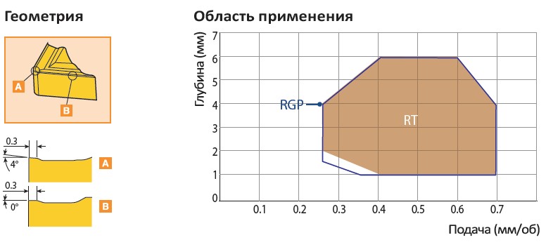 Рис. 8. Характеристики и область применения пластин со стружколомом RGP