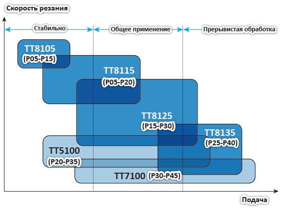 Рис. 2. Выбор сплавов TaeguTec в зависимости от режимов обработки