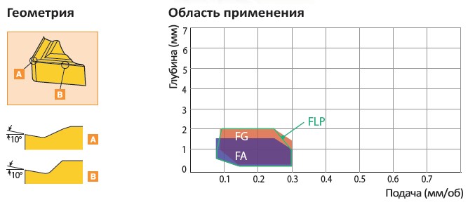 Рис. 5. Характеристики и область применения пластин со стружколомом FLP