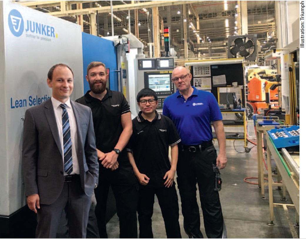 JUNKER не только поставляет оборудование, но и помогает интегрировать его в производство. Сотрудники Triumph прошли обучение программированию данных станков, чтобы они могли сразу же использоваться с оптимальной производительностью. Джек Селлерс рассказывает: «Инструкторы JUNKER были очень компетентны и всё просто и доступно объяснили. Это позволило нам сразу хорошо понять устройство станка». Кроме того, Дж. Селлерс очень доволен сервисным обслуживанием в Англии и Таиланде: «При любых вопросах JUNKER быстро реагирует и предлагает подходящие решения. В целом, у нас прекрасный опыт работы со специалистами JUNKER».
