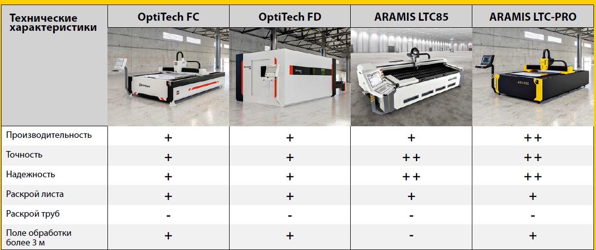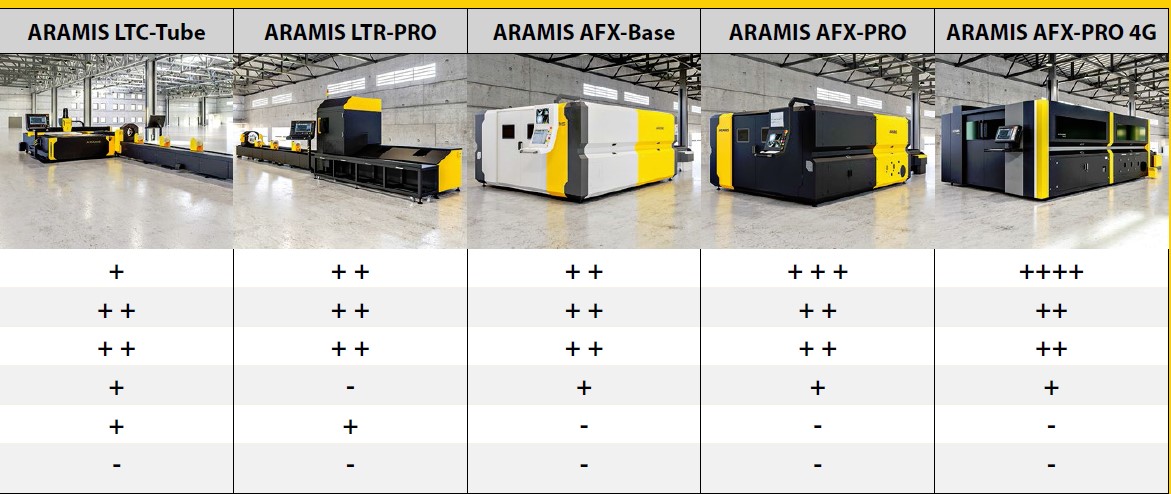 Сегодня компания ARAMIS производит очень широкую модельную линейку лазерных комплексов, начиная от базовой серии OptiTech FC, требующей минимальных первичных затрат, которые обеспечивают стабильную и качественную работу, до высокоскоростных, надежных и максимально производительных машин европейского класса серии AFX-PRO 4G.