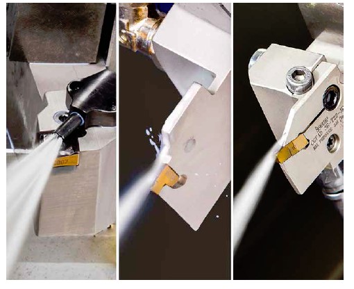 Орошение СОЖ зоны резания снижает трение стружки о режущую пластину и заготовку. Благодаря этому, а также высокой теплоотдаче СОЖ, радикально улучшается и теплообмен. В то же время снижение сил резания, а также температуры обрабатываемой детали, уменьшает её деформацию, что, в свою очередь, способствует повышению эффективности производства.