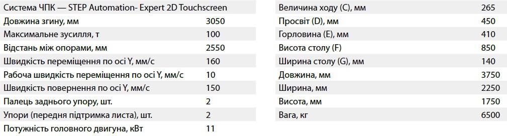 Технічні характеристики листозгинального преса Inanlar HAP 100 т 30/25