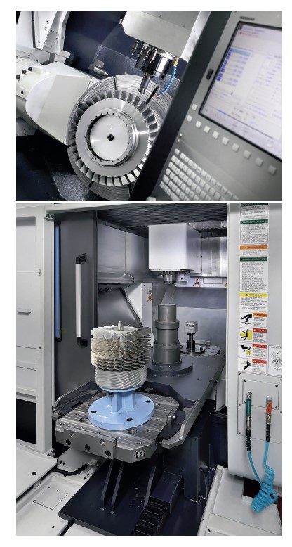 Оптические линейки на осях XYZ и угловые оптические датчики (энкодеры) на осях B и C обеспечивают чрезвычайно высокую точность позиционирования и повторяемость. Система ЧПУ FANUC 31i-B5 синхронизирует все перемещения станка по пяти осям (подача по всем осям одновременно), позволяя выполнять обработку по всему контуру детали за один установ.
