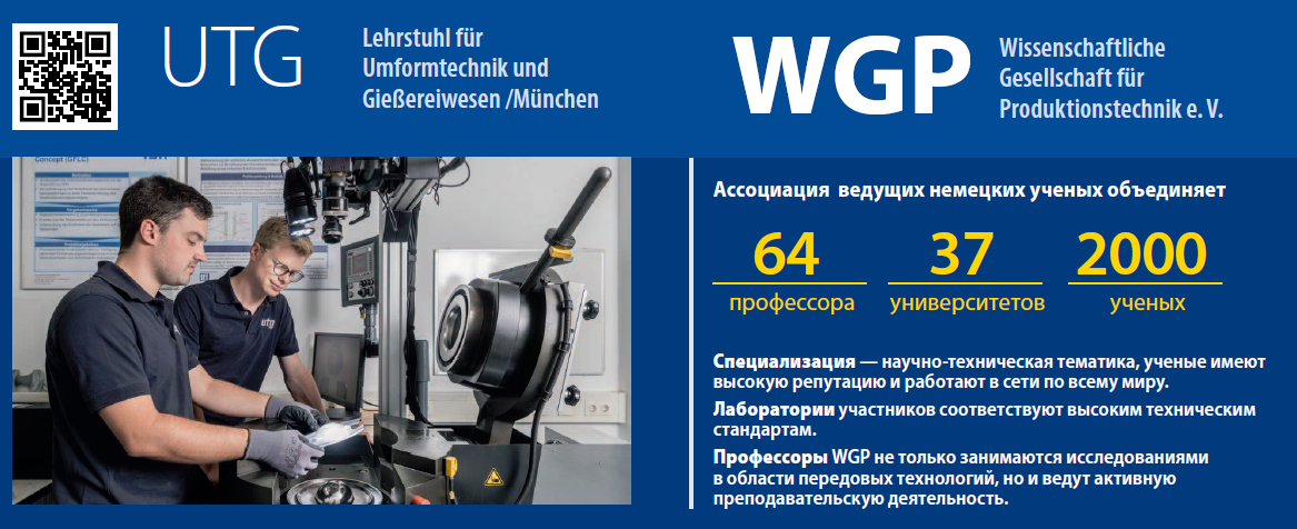 WGP (Wissenschaftliche Gesellschaft für Produktionstechnik e.V.) — ассоциация ведущих немецких ученых, которая объединяет 64 профессора и 37 университетов, в которых трудится около 2000 ученых, специализирующихся на научно-технической тематике, имеющих высокую репутацию и работающих в сети по всему миру.