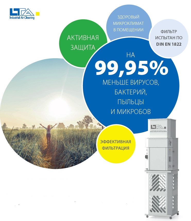 Воздухоочиститель Virus Cleaner VC 60 от LTA Lufttechnik GmbH решает эту проблему, улавливая содержащие вирусы частицы аэрозолей диаметром до 0,01 мкм. За счёт вытяжки воздуха вблизи пола обеспечивается равномерность воздушного потока.
