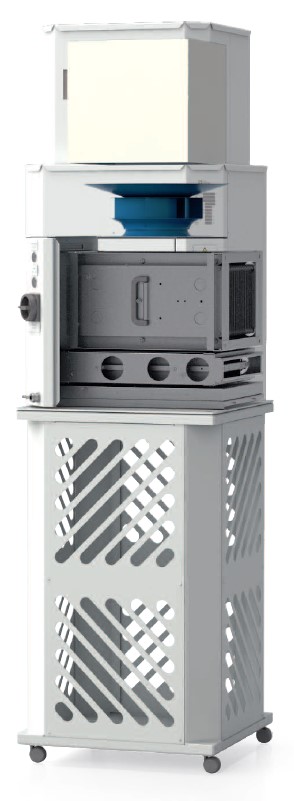 Воздух даже из отдаленных участков помещения эффективно всасывается и фильтруется. После очистки воздух выдувается воздухоочистителем Virus Cleaner VC 60 вертикально в направлении потолка, благодаря чему очищенный воздух распределяется по всему помещению.