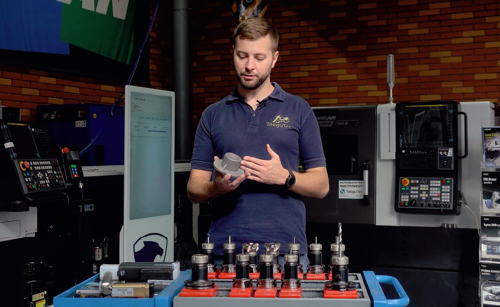 Высокоточную обработку посадочной поверхности под подшипник демонстрирует Резник Егор — технолог компании «ТаегуТек Украина».