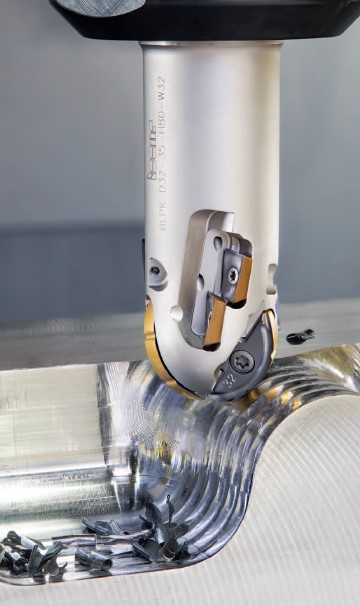 Область применения фрез с ВП — черновая обработка плоскостей, полостей, карманов и сложных поверхностей (рис. 4). При производстве крупногабаритных компонентов данный инструмент чаще используется для обработки заготовок из стали и чугуна, но сегодня и фрезерование с высокой подачей таких материалов, как титан и жаропрочные сплавы, уже совсем не редкость.