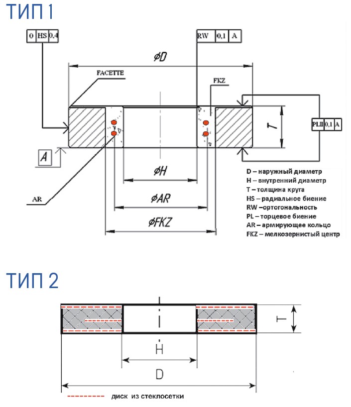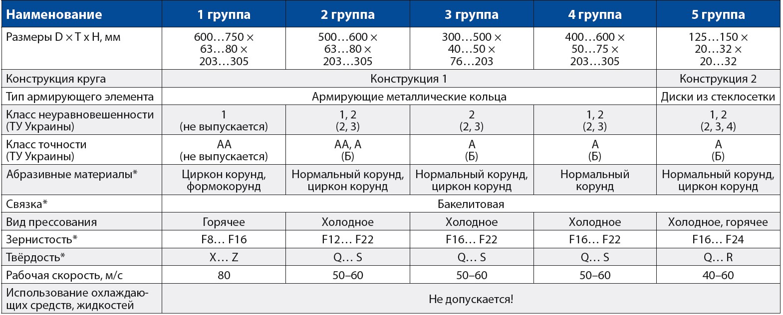 Таблица 1. Общепринятые технические параметры обдирочных кругов