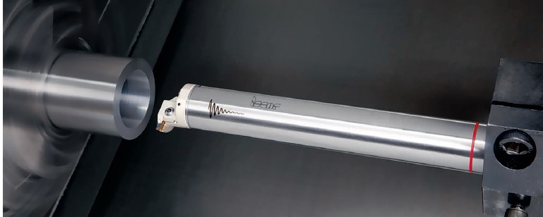 При внутреннем точении конструкция расточной оправки является основным фактором, влияющим на жесткость инструмента. Большое отношение вылета хвостовика к диаметру приводит к изгибу и вибрации инструмента, что негативно отражается на точности обработки и качестве поверхности. Семейство антивибрационных расточных оправок WHISPERLINE позволяет выйти за рамки подобных ограничений. Они имеют специально разработанный встроенный амортизатор и механизм гашения вибрации, который обеспечивает стабильное резание при вылете до 14 диаметров (рис. 2).