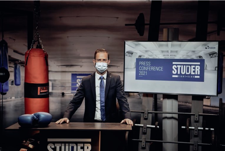 Пресс-конференция STUDER регулярно проходит в рамках ежегодного глобального форума Motion Meeting. В соответствии с традициями компании была задана очередная тема. На этот раз: «Бойцовский клуб STUDER». Спикеры выступали в прямом эфире прямо из тренировочного зала, оборудованного специально для конференции.