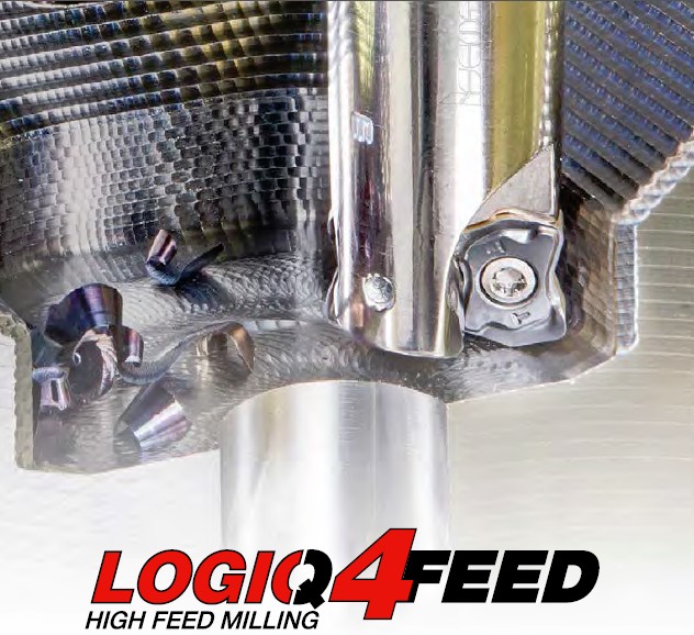 Другая новинка — фрезы LOGIQ4FEED — привлекает внимание необычной формой двусторонних сменных пластин. Специфический профиль СМП направлен на обеспечение 4‑х режущих кромок для эффективного врезания под углом, отражающим главное предназначение фрезы: высокопроизводительная черновая обработка карманов и полостей, в особенности глубоких,в заготовках твердостью до HRC 50.
