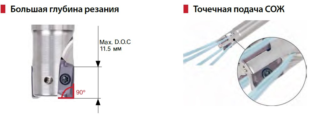Низкое усилие резания и большая площадь поперечного сечения кромки обеспечивают длительный и стабильный срок службы инструмента.