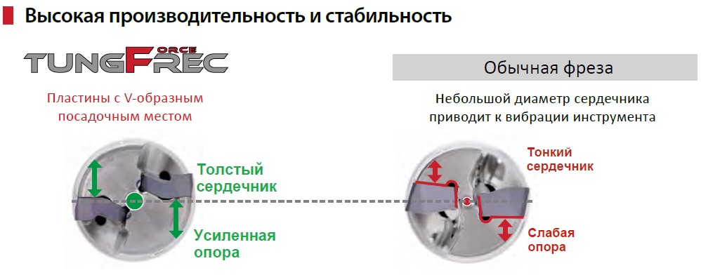 Высокая производительность и стабильность достигаются за счет уникальной формы режущей кромки.