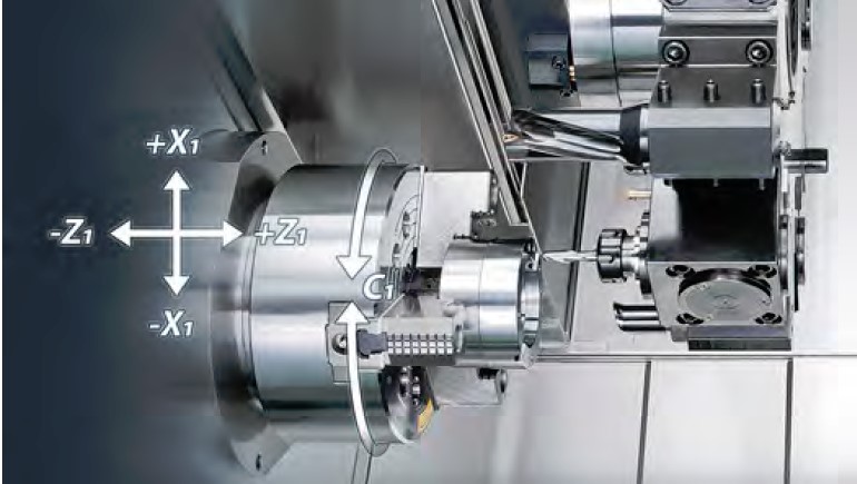 Механика GTS 150 позволяет обеспечить до 8 осей управления — дополнительно к осям, указанным на фото, можно (опционально) добавить оси Y1 и Y2 — перемещения револьверов.