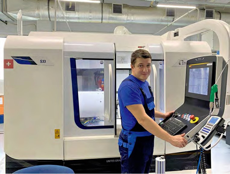 Дизайн станка радует глаз, и хочется дольше сохранить его в таком состоянии. Ведь работать за новым станком класса Studer — это как управлять только что выехавшим из салона легковым автомобилем. В нём всё хорошо: и дизайн, и интуитивно понятное управление, и отклик на твои действия. Как я уже говорил, — это очень умный станок. Предупреждает ошибки. Напоминает о необходимости поменять масло, выполнить предупредительно-плановое техобслуживание. Подсказывает даже, сколько осталось времени до диагностики работы определенного клапана или механизма. Это очень удобная опция. Немаловажно и то, что от него мало шума. Также отлично решен вопрос освещения. S33 компактен, потому занимает немного места в цеху.