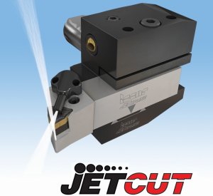 Для установлення стрижневих токарних різців на верстатах із ЧПК ІСКАР пропонує нові різцетримачі та державки лінійки JETCUT згідно з VDI DIN 69880. Характерна риса цих виробів — канали для внутрішнього підведення ЗОР під високим тиском у напрямку зверху та знизу по відношенню до робочої кромки пластини. Результатом такого поєднання напрямків стає дивовижна комбінація результативного охолодження та ефективного подрібнення стружки, що дозволяє значно покращити характеристики операцій обточування зовнішньої поверхні, проточування канавок та відрізки заготовок. Крім того, можливе використання різцетримача і на верстатах, у яких тиск у системі підведення ЗОР не виходить за межі звичайних значень: охолоджувальна рідина подається через додаткове сопло, розташоване у верхній частині корпусу.
