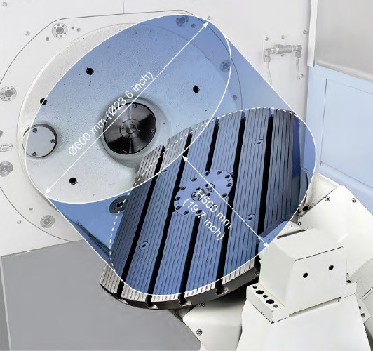 DVF 5000 забезпечує велику гнучкість і універсальність застосування завдяки можливості обробки заготовок різних габаритів і різноманітності затискної оснастки для їх фіксації. У робочій зоні діаметром 630 мм і висотою 450 мм можна встановити заготовку з максимальним діаметром 600 мм та висотою 500 мм. Тобто, порівняно з попередньою версією, розмір столу збільшено на 26 % і значно розширено максимальну зону обробки. Зараз вона на 32 % більша. Ця особливість відкриває двері для експлуатації верстата в найрізноманітніших галузях промисловості. На ньому можна виробляти широкий спектр деталей — від невеликих, але складних і високоточних виробів медичного призначення до деталей середнього розміру, затребуваних в автомобільній, аерокосмічній та напівпровідниковій промисловості.