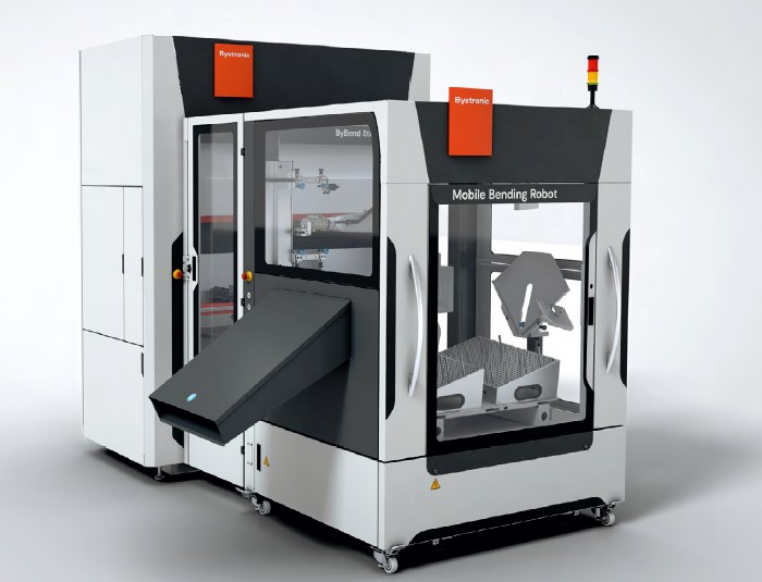 Bystronic представляє ByCell Bend Star M — осередок, до складу якого входять робот, оснащений функцією «Оптичне визначення деталей», і прес ByBend Star 120. Комплекс призначений для згинання деталей малого та середнього розміру. Завдяки своїй високій продуктивності та компактним розмірам він підходить для будь-якого виробничого цеху — для виробництва продукції як дрібними партіями, так і великими серіями. Робот працює в повністю автоматичному режимі та без помилок.