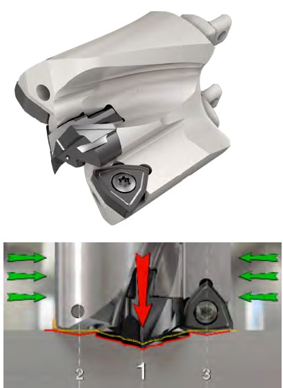 Висока продуктивність: унікальна геометрія пластини забезпечує стабільну роботу за високих швидкостей подачі, збільшуючи швидкість різання та поліпшуючи економіку процесу.