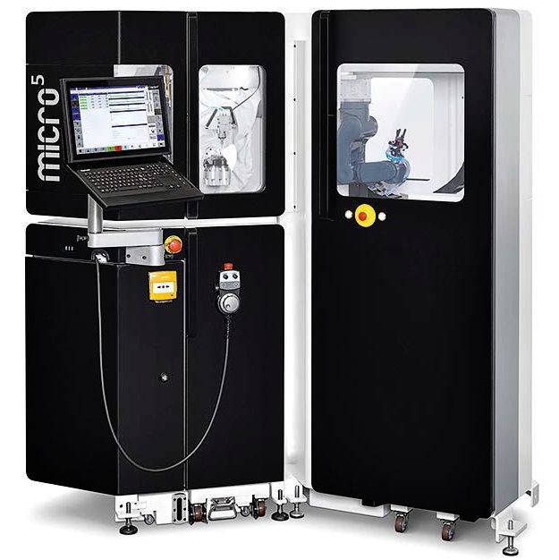 Робоча зона Micro5, де демонструється 5-осьова обробка деталі, що використовується для хірургії кисті