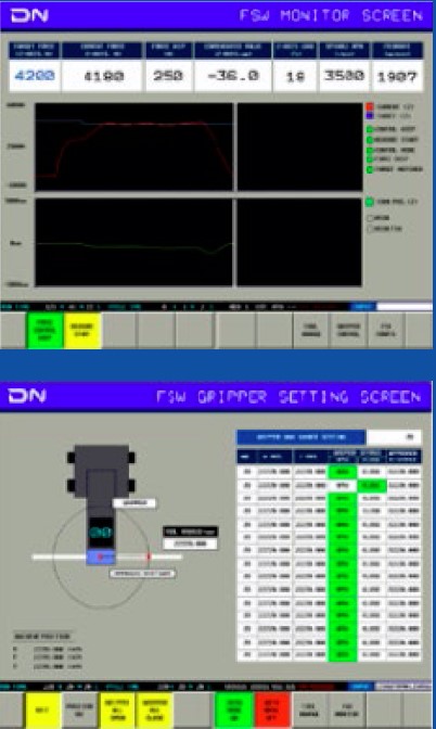 ПРОГРАМНЕ ЗАБЕЗПЕЧЕННЯВласна система керування DNSolutions здійснює точнее регулювання осьового зусилля через вбудований датчик, який контролює притискну силу по всій довжині шва та підтримує оптимальні параметри процесу FSW.