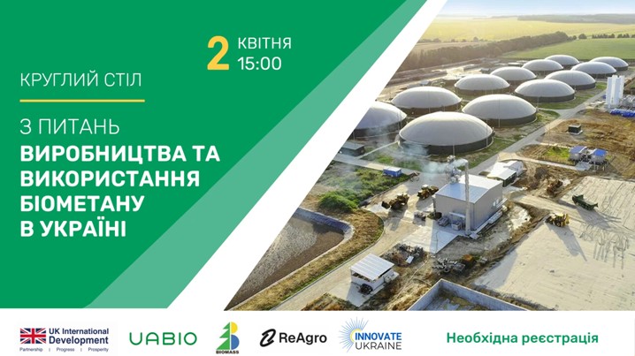 Круглий стіл організований у межах проєкту «Розроблення бізнес-моделі виробництва біометану в Україні», що виконується у програмі «Innovate Ukraine – підтримка енергетичного відновлення України» консорціумом компаній Великої Британії (MDY Legal, Rika Biofuel Developments LTD) та України (Біоенергетична асоціація України, компанія Regenerative Agro, НТЦ «Біомаса», SDF).